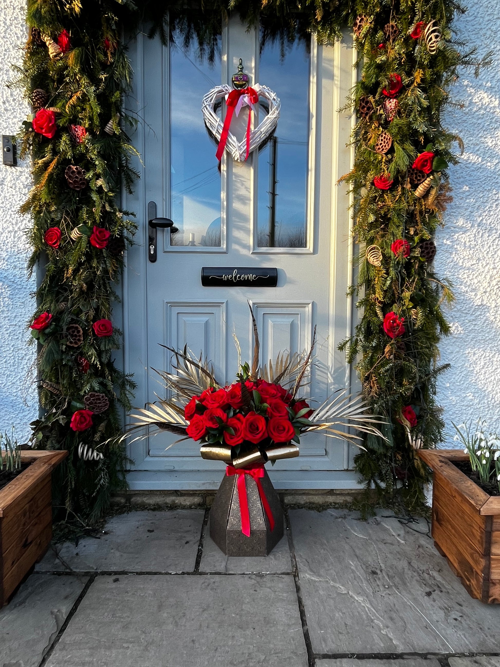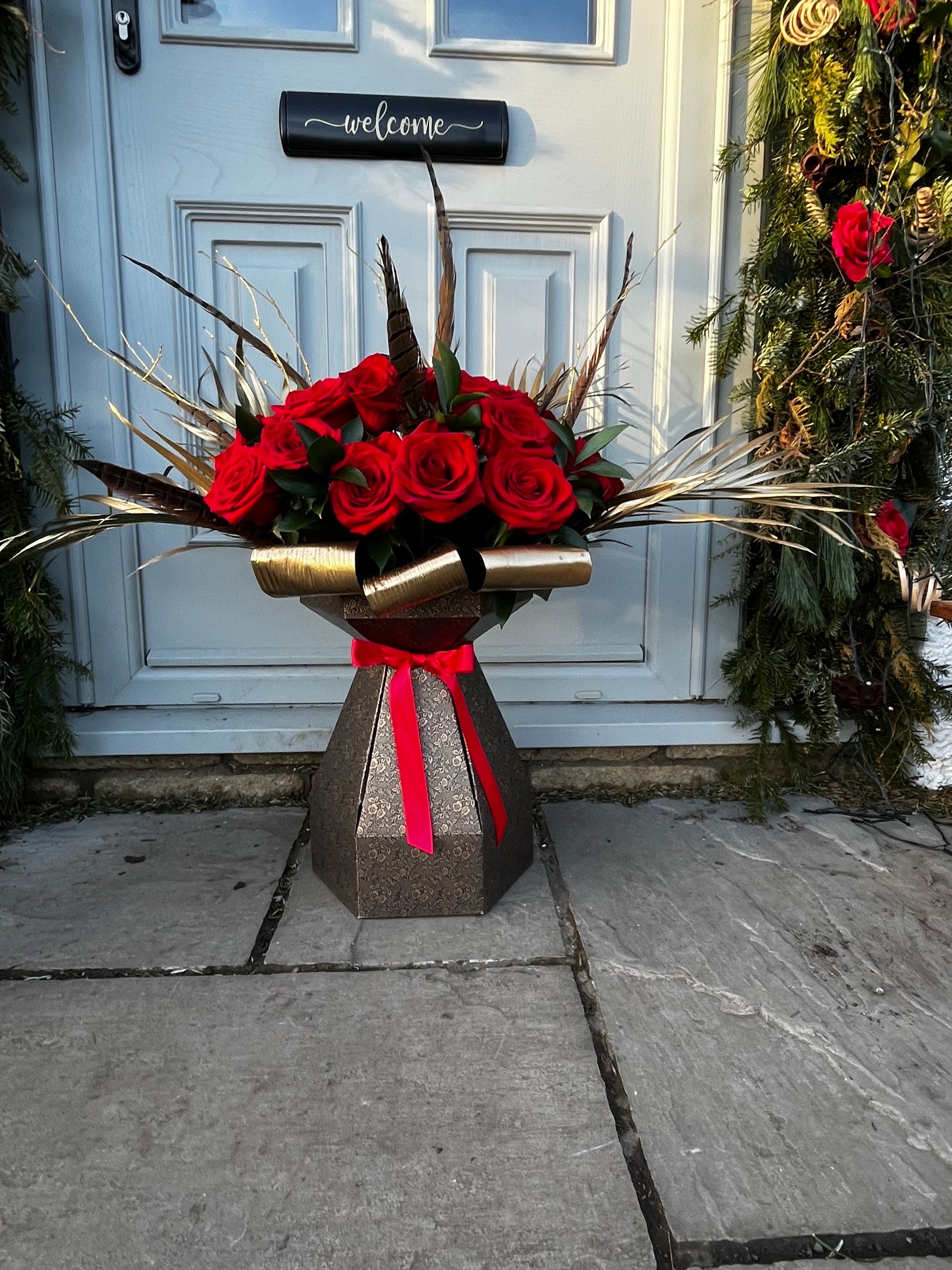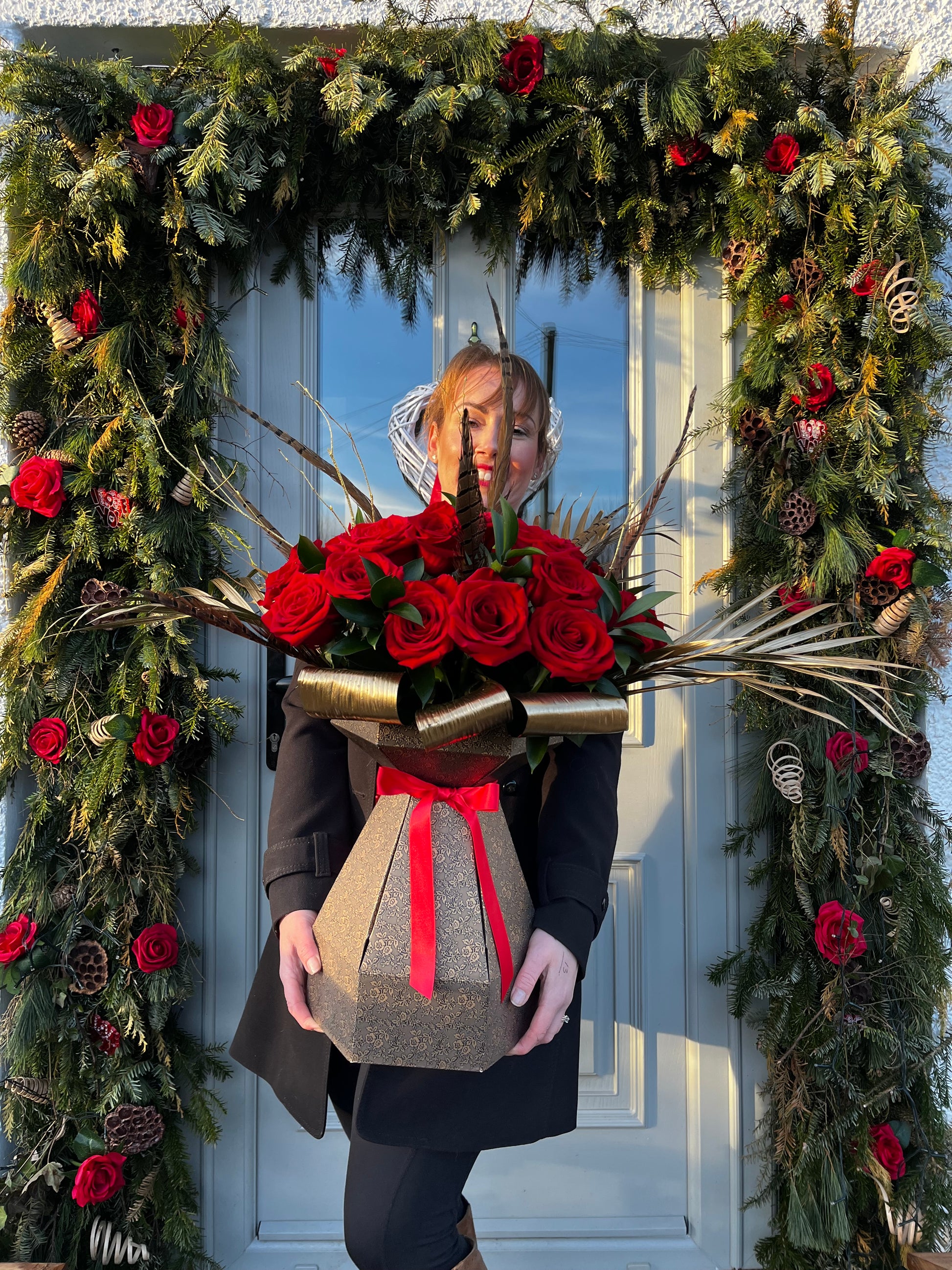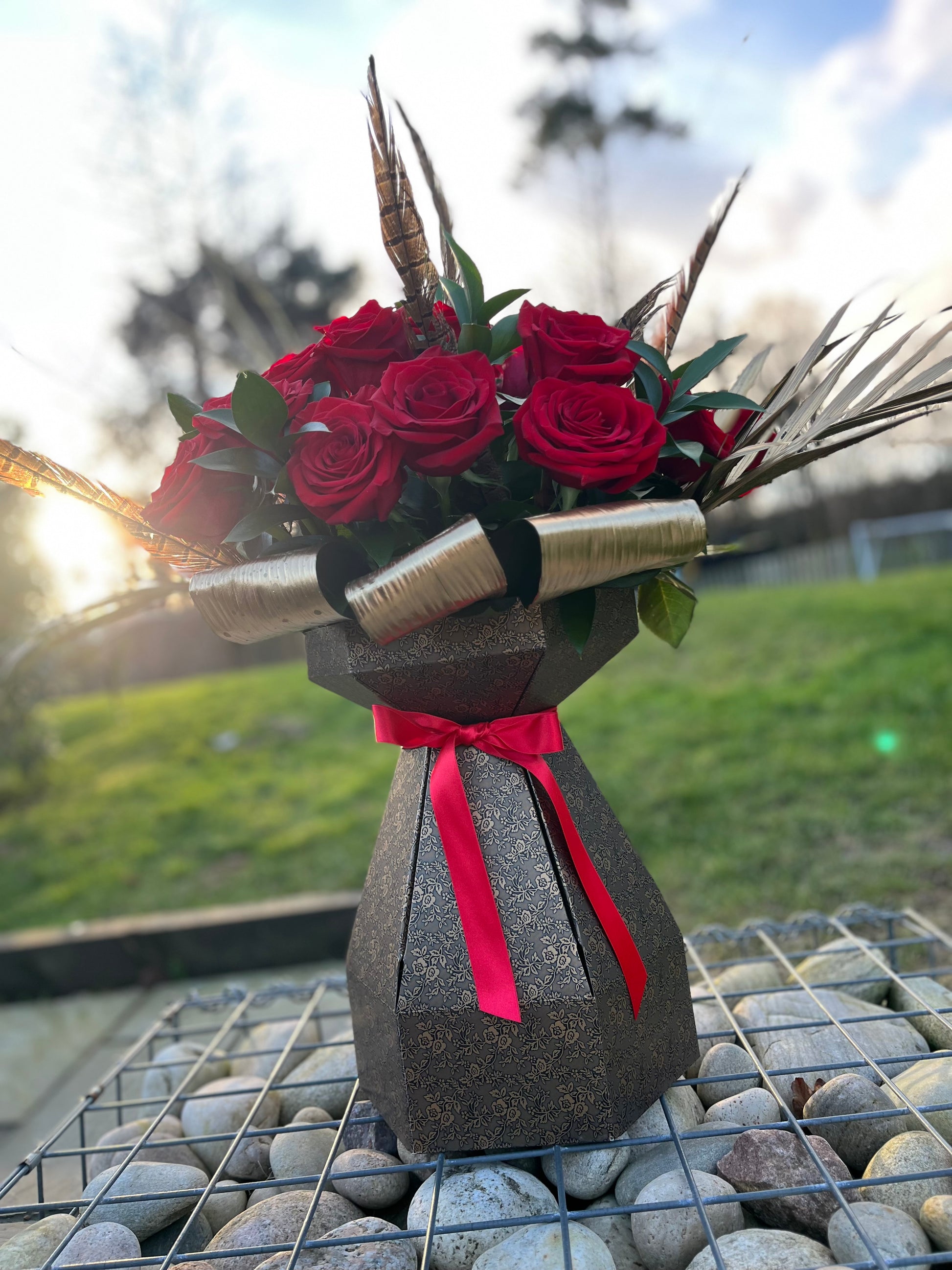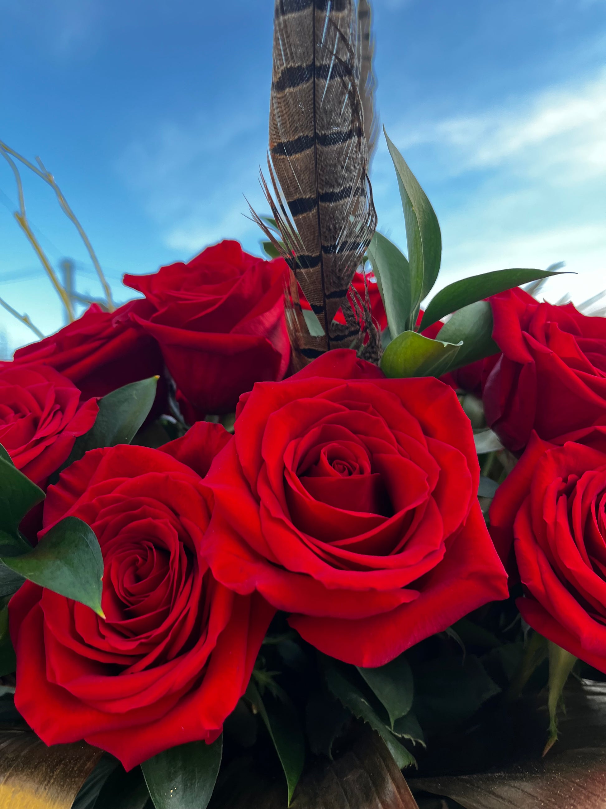 24 Rich red roses, pheasant feathers, sculptural textures, and a show-stopping silhouette come together to create a true Valentine’s masterpiece. This is not just flowers… it’s a declaration.